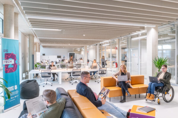 Mitten im Gründungszentrum STARTBLOCK B2 findest du einen Coworking Space, der dir den Rücken freihält. Unsere modernen, offenen Arbeitsbereiche bieten dir die richtige Mischung aus Fokus und Austausch – für konzentriertes Arbeiten genauso wie für spontane Gespräche zwischendurch.