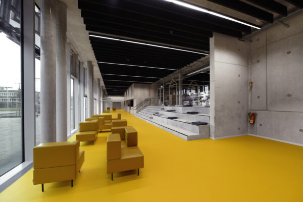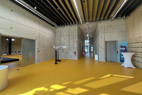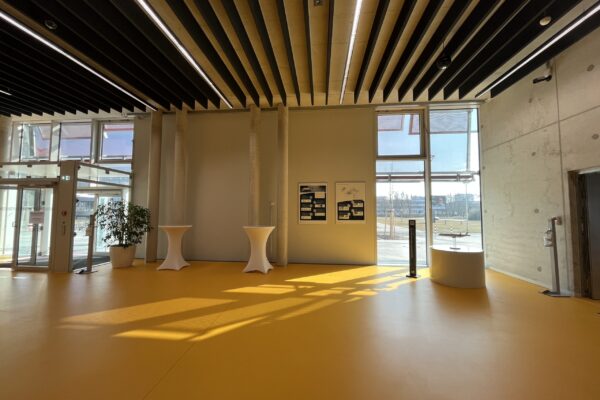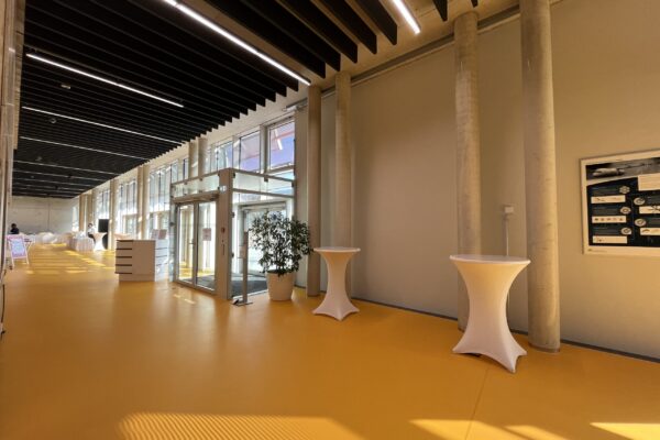 Das Foyer im STARTBLOCK B2 ist offen, hell und gemacht für Begegnung. Ideal als Empfangsbereich, für Networking-Pausen, Ausstellungen oder lockere Get-togethers vor und nach deinem Event.